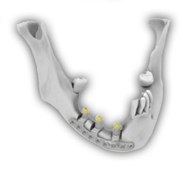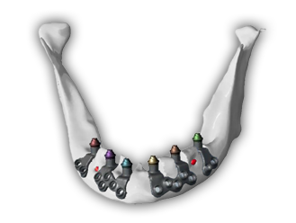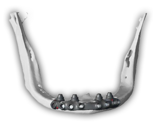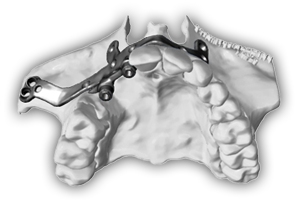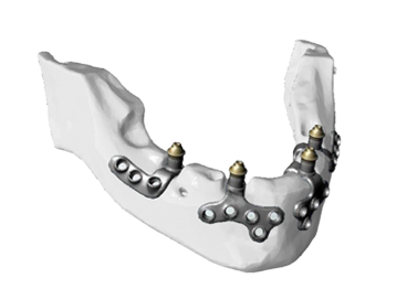 Un equipo multidisciplinar compuesto por ingenieros, cirujanos maxilofaciales y técnicos dentales, son los responsables de planificar, diseñar y fabricar una estructura personalizada desde TC helicoidal o Cone Beam de clínica. Esta estructura fabricada en Ti-6AI-4V y sinterizada por láser, es la que soportará los implantes estratégicamente planificados para soportar la futura prótesis del paciente.